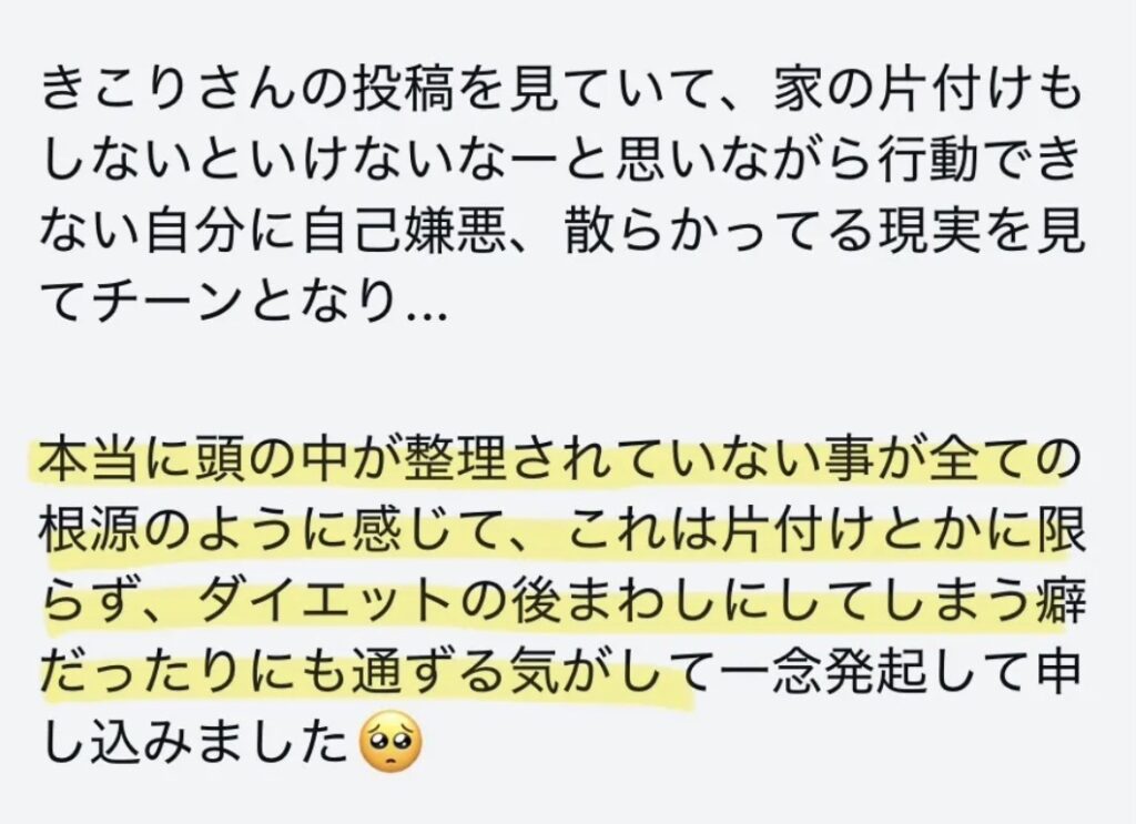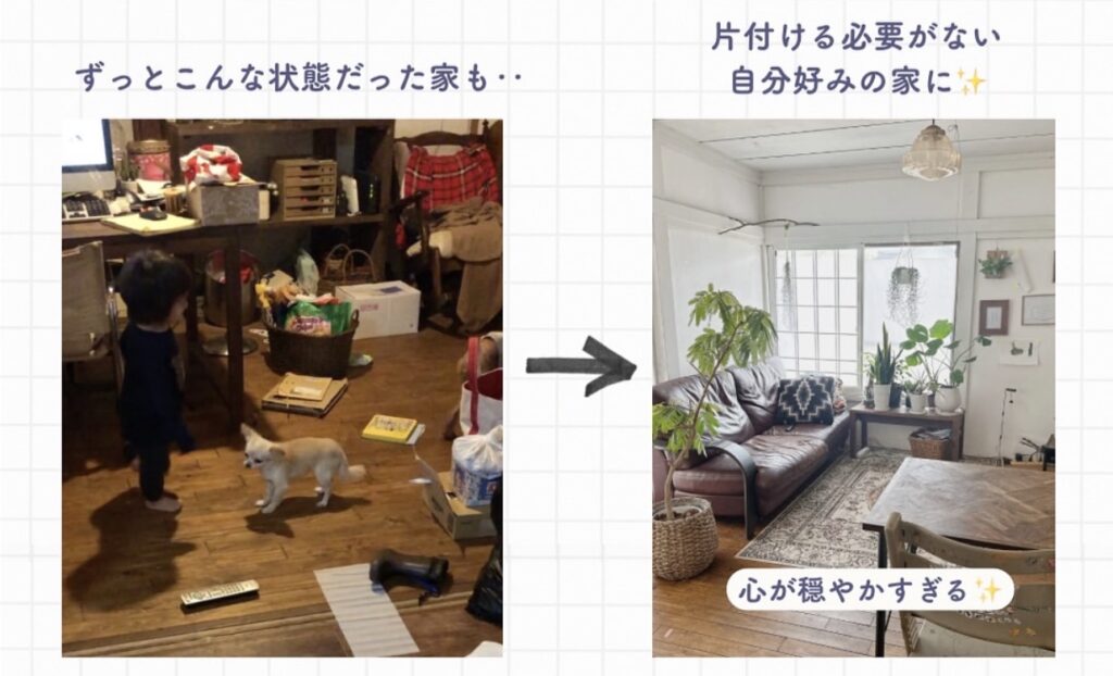 なかなか捨てられなかったものが躊躇なく捨てられるようになり、モノの位置を見直したら一気に家が片付くようになりました♪
