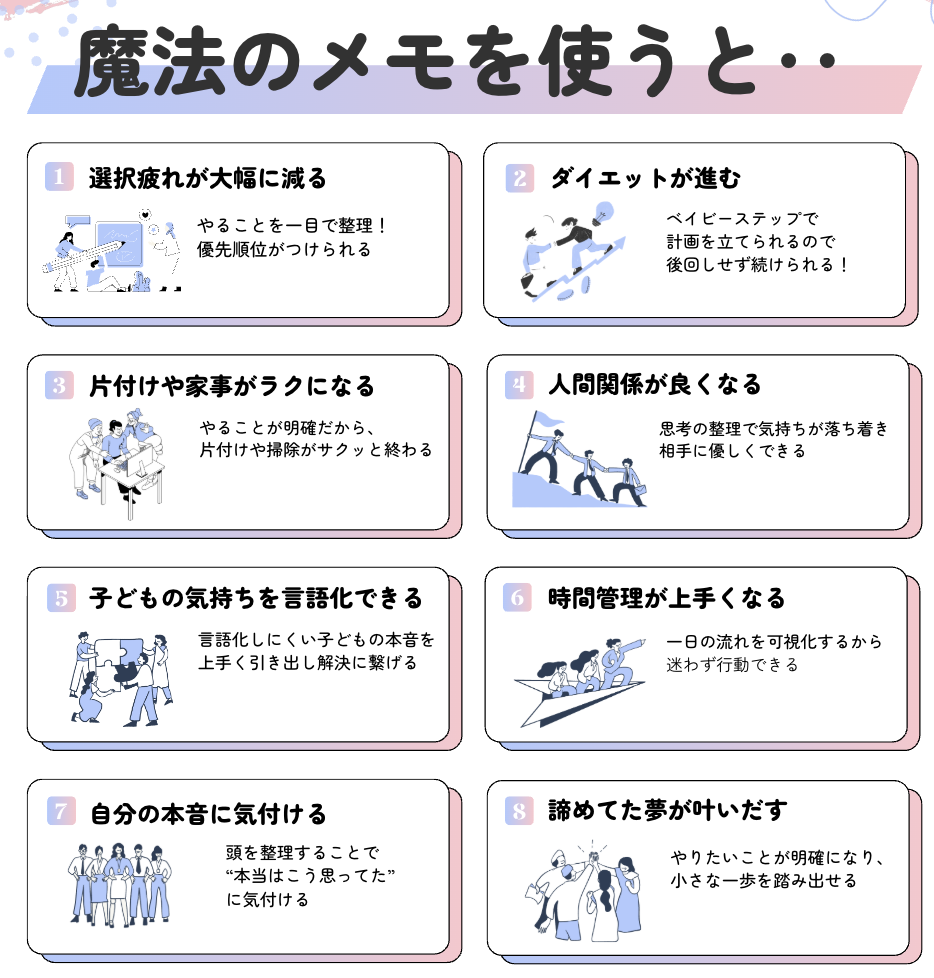 頭の中に散らかっている「やること」や「モヤモヤした気持ち」を整理するだけで、人って未来に向けてどんどん変わるんですよ✨
